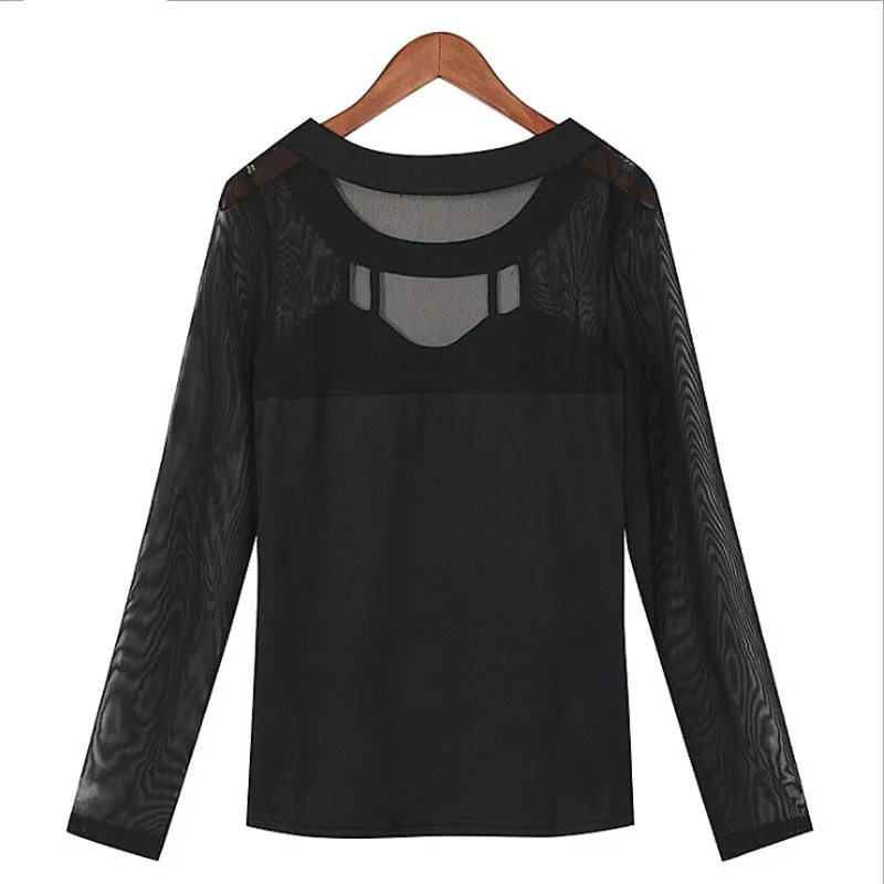 New Women Sexy Mesh Blouses 2017 Blusas Femininas Long Sleeve O Neck Casual Black Slim See Through Shir