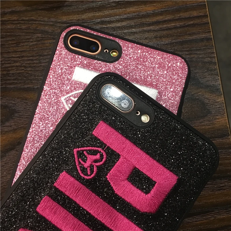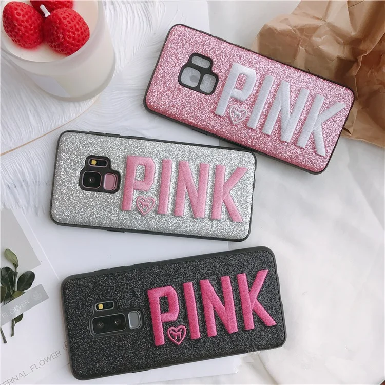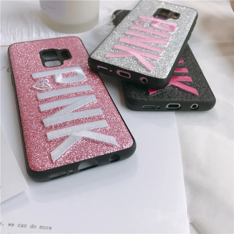 New 3D Embroidery Glitter PINK angel Case for Samsung S10 Plus S9 S8 Note 9 Shiny girls Cover for iPhon