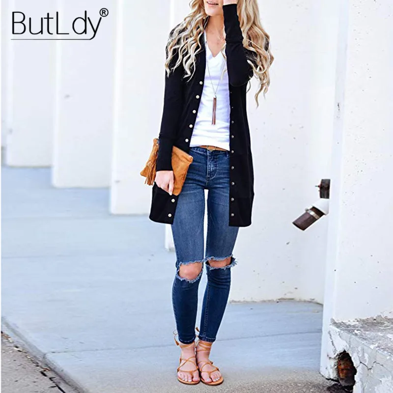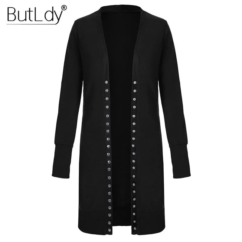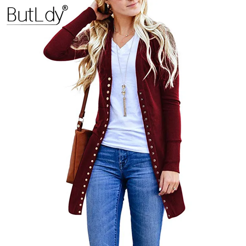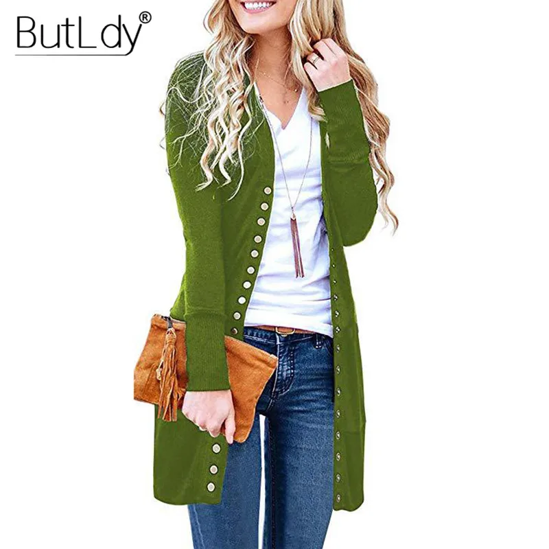 Buy Long Sweater Women Buttons Knitted Cardigan Long Sleeve Ribbed Neckline Knitwear Coat Autumn Winter