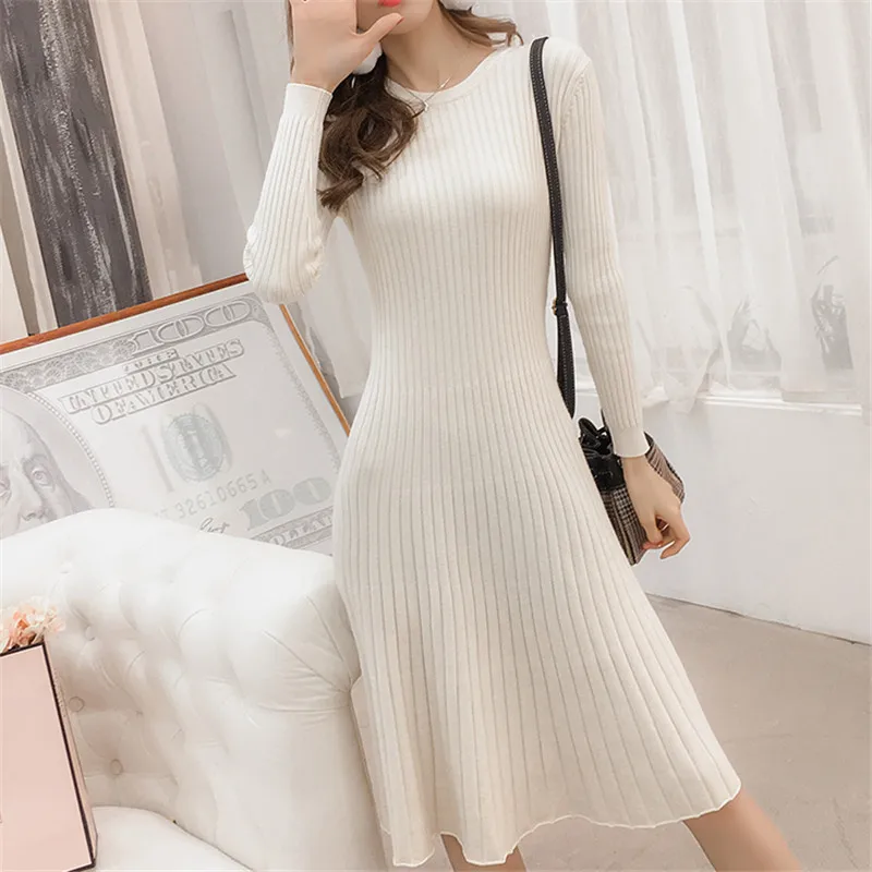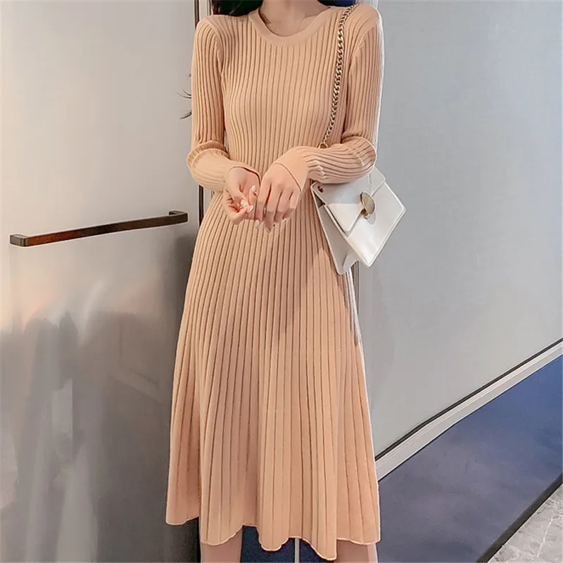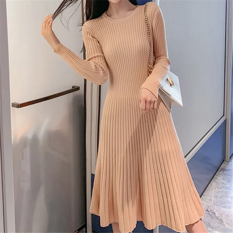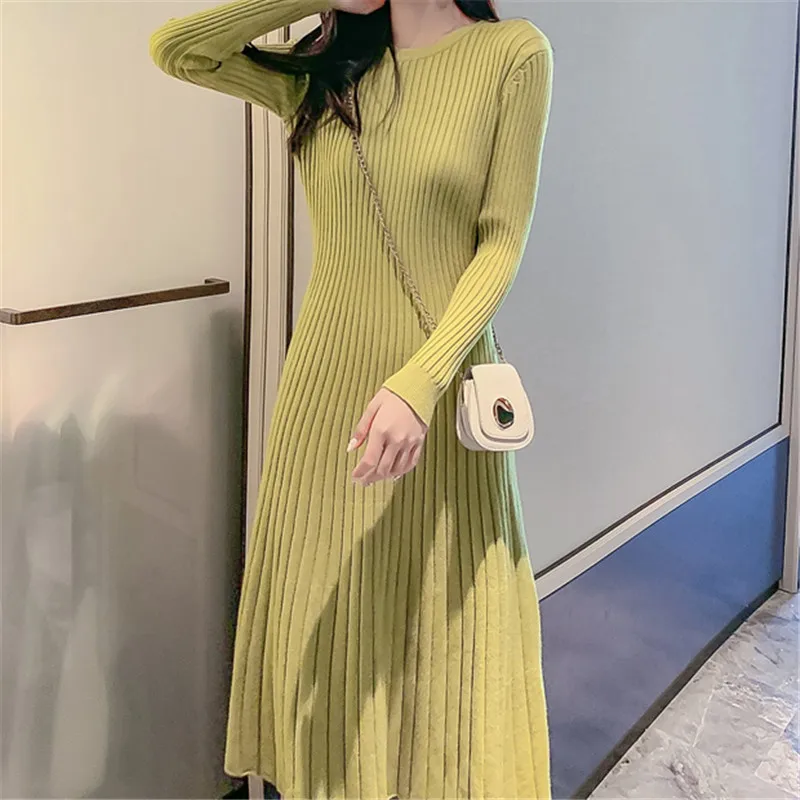 Promo Korean Sweater Dress Women Knitted Dresses Fashion Woman Pullovers Sweaters Dresses Woman High Wais